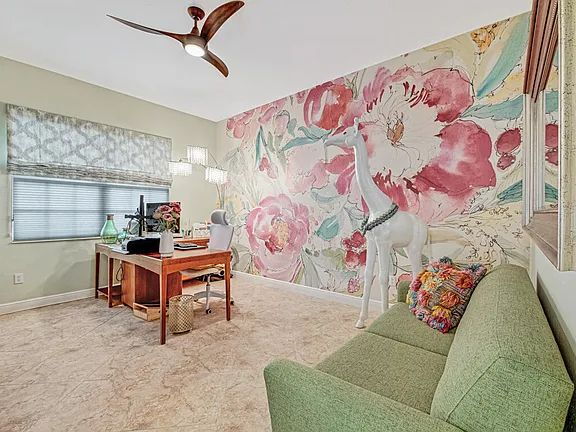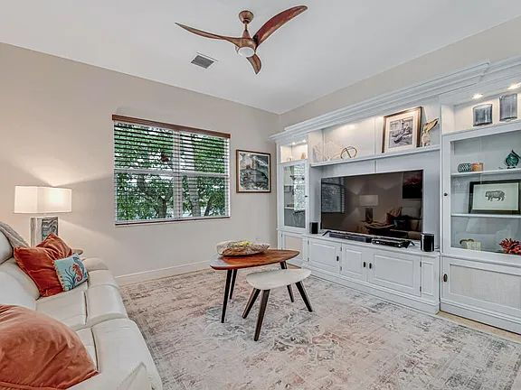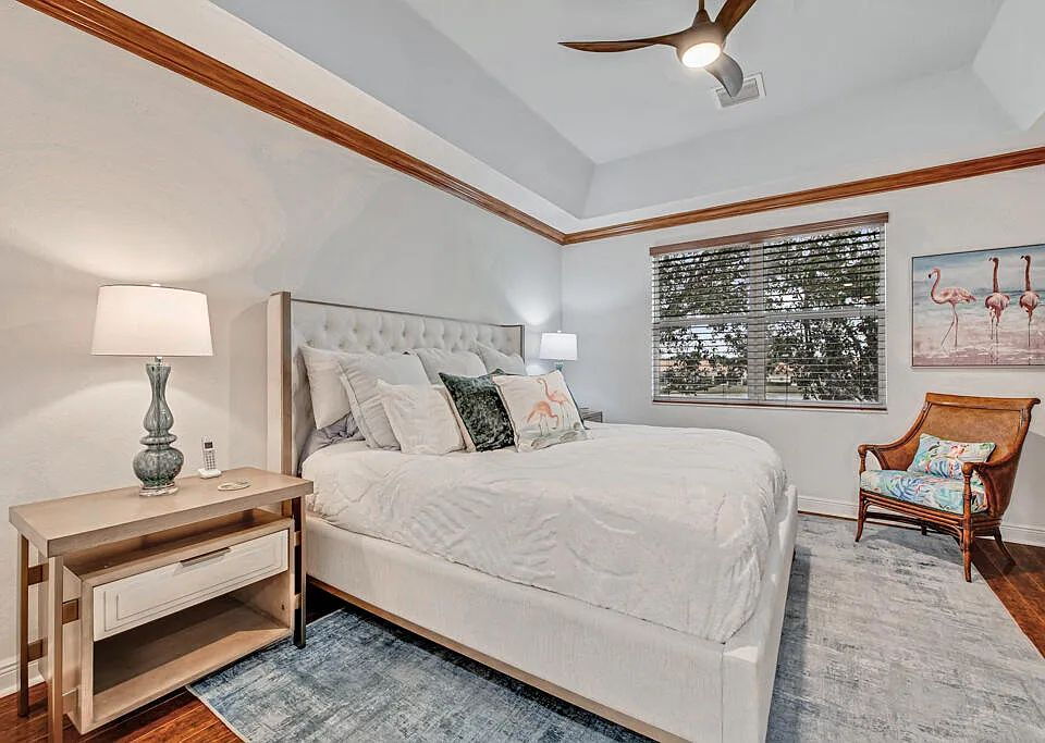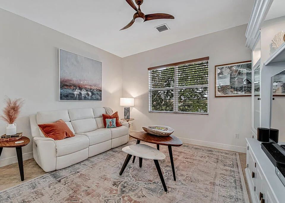 This is a stunning, fully furnished 3-bedroom, 2-bath waterfront coach home is located in the 55+ Baywinds community in West Palm Beach. The nearly 2,400 sq ft residence is light-filled and thoughtfully laid out, offering lake views from most rooms, a private elevator, and impact glass throughout for comfort and peace of mind.